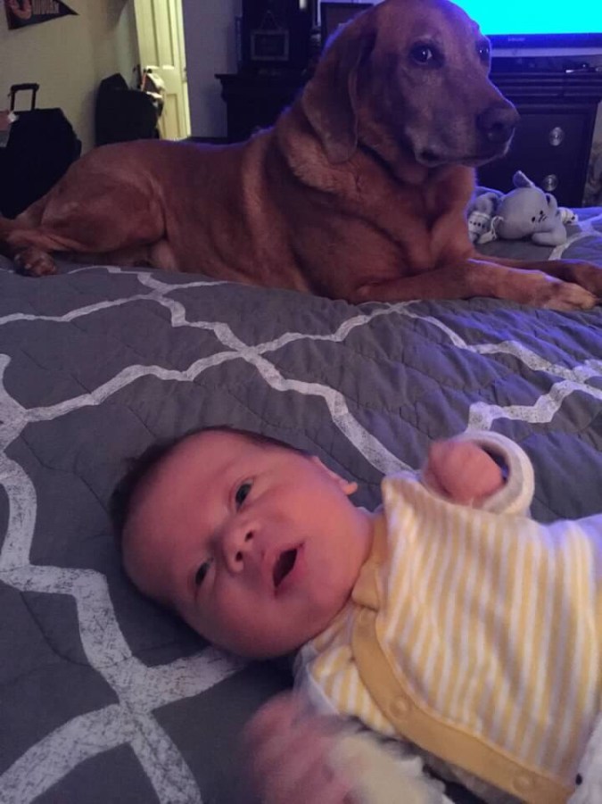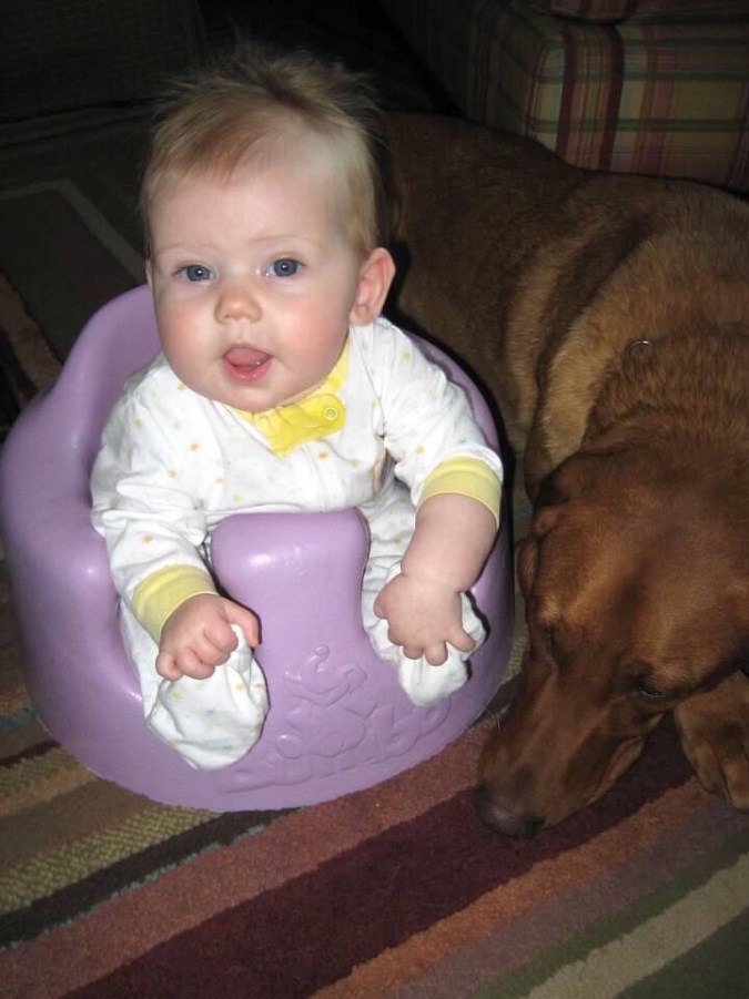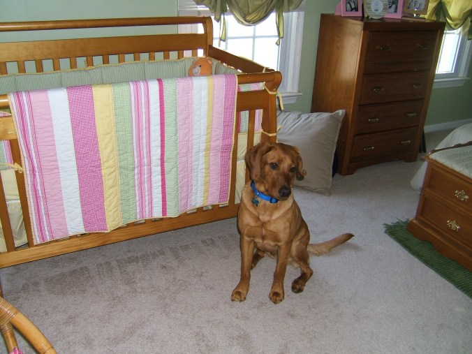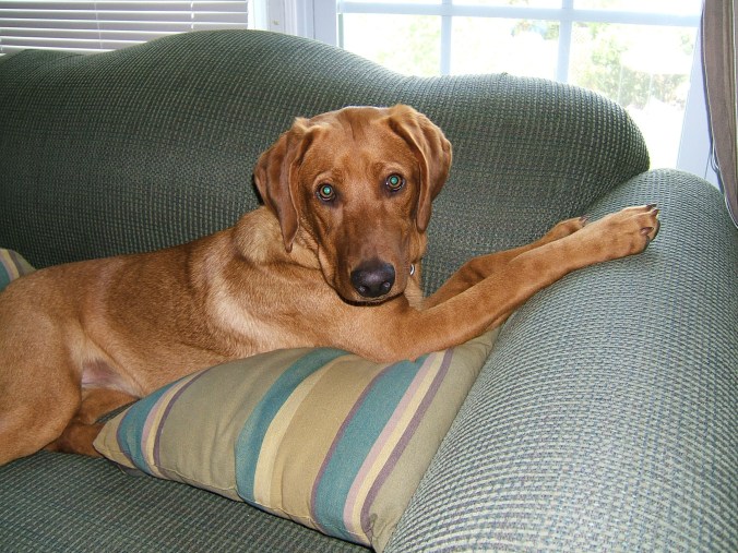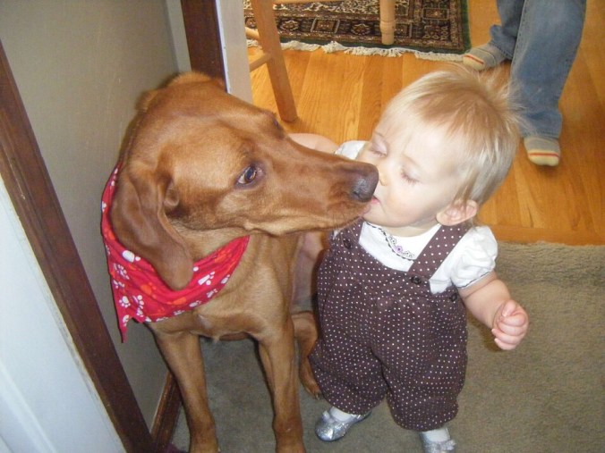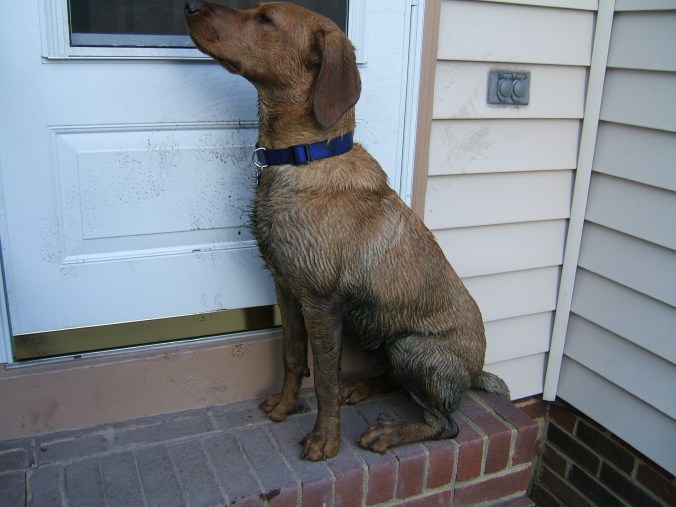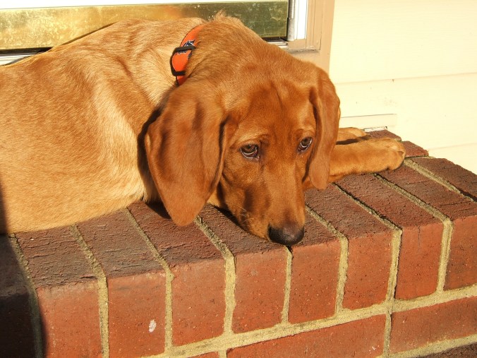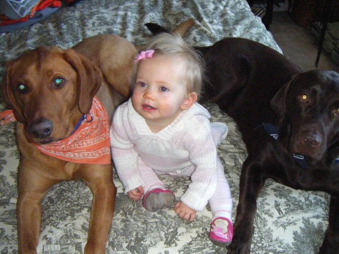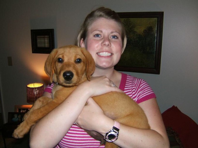 Sir Oliver Red of Fargo – the “red” lab I just had to have – so much that I flew him from North Dakota to Florida in the dead of summer 2006. It was too hot for him to fly into Pensacola, Florida, so he flew into Jacksonville. We drove 5 hours each way to get him in the middle of the night and got home around 5 A.M., just in time for me to to go to work (a brand new pharmacist – by like 20 days! – definitely doesn’t need sleep π, not if you get a new puppy anyway π).