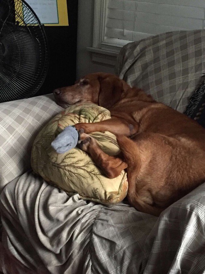 Poor Ike had mast cell tumors with 6 or 7 surgeries in his last year and we knew it was time. So last November, we said goodbye to our sweet brown boy. And I was there to give him a best last week with me.